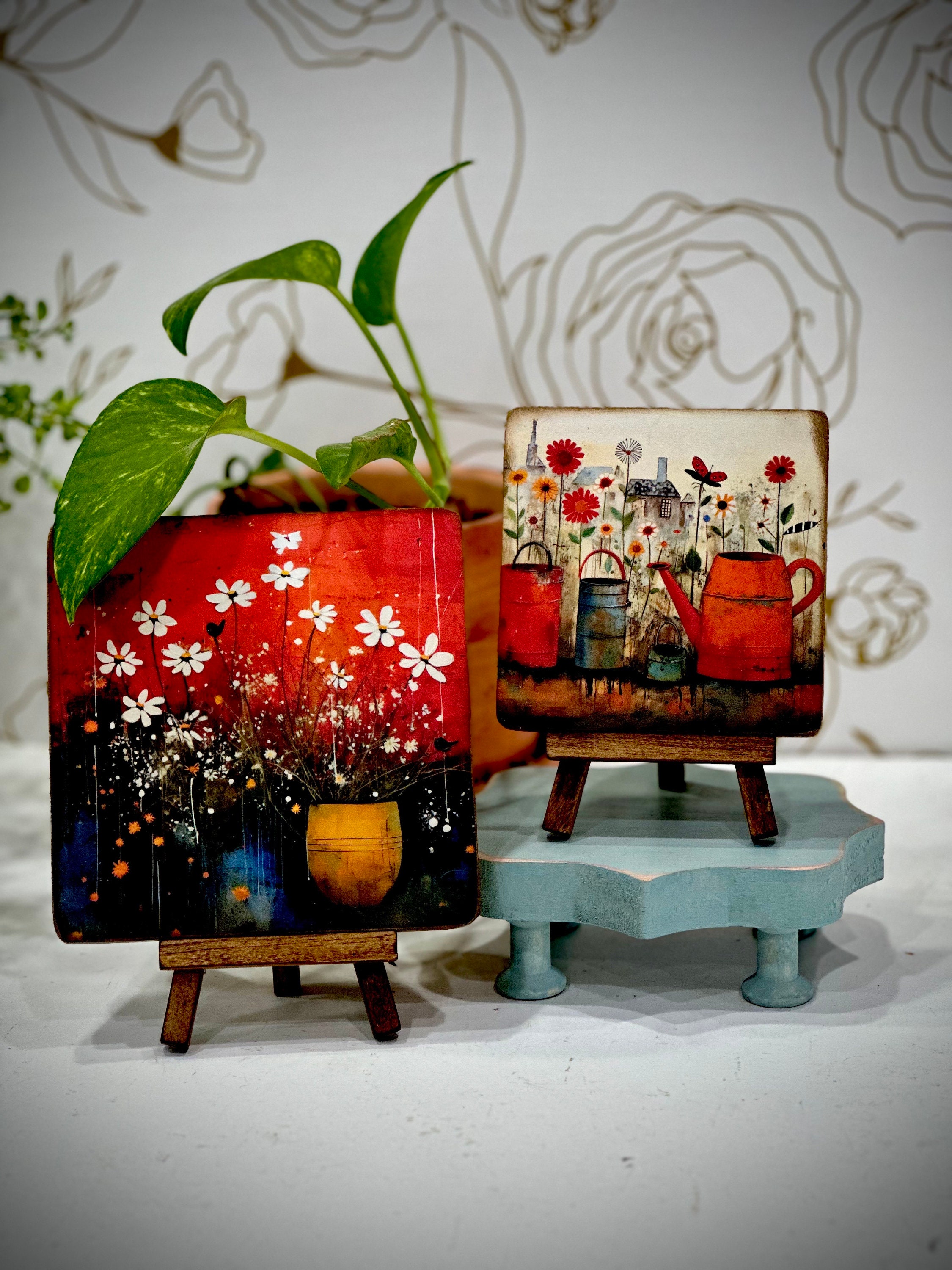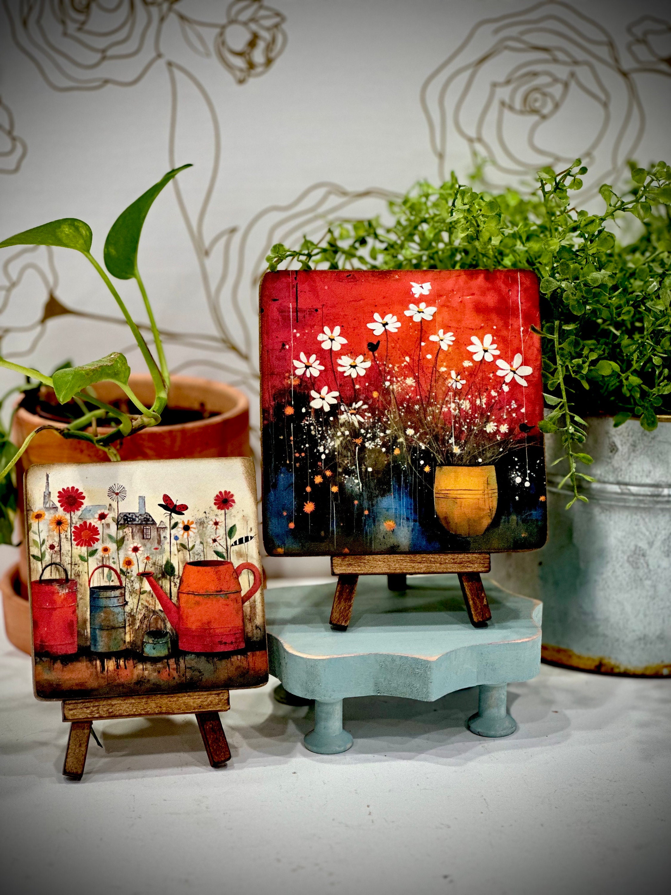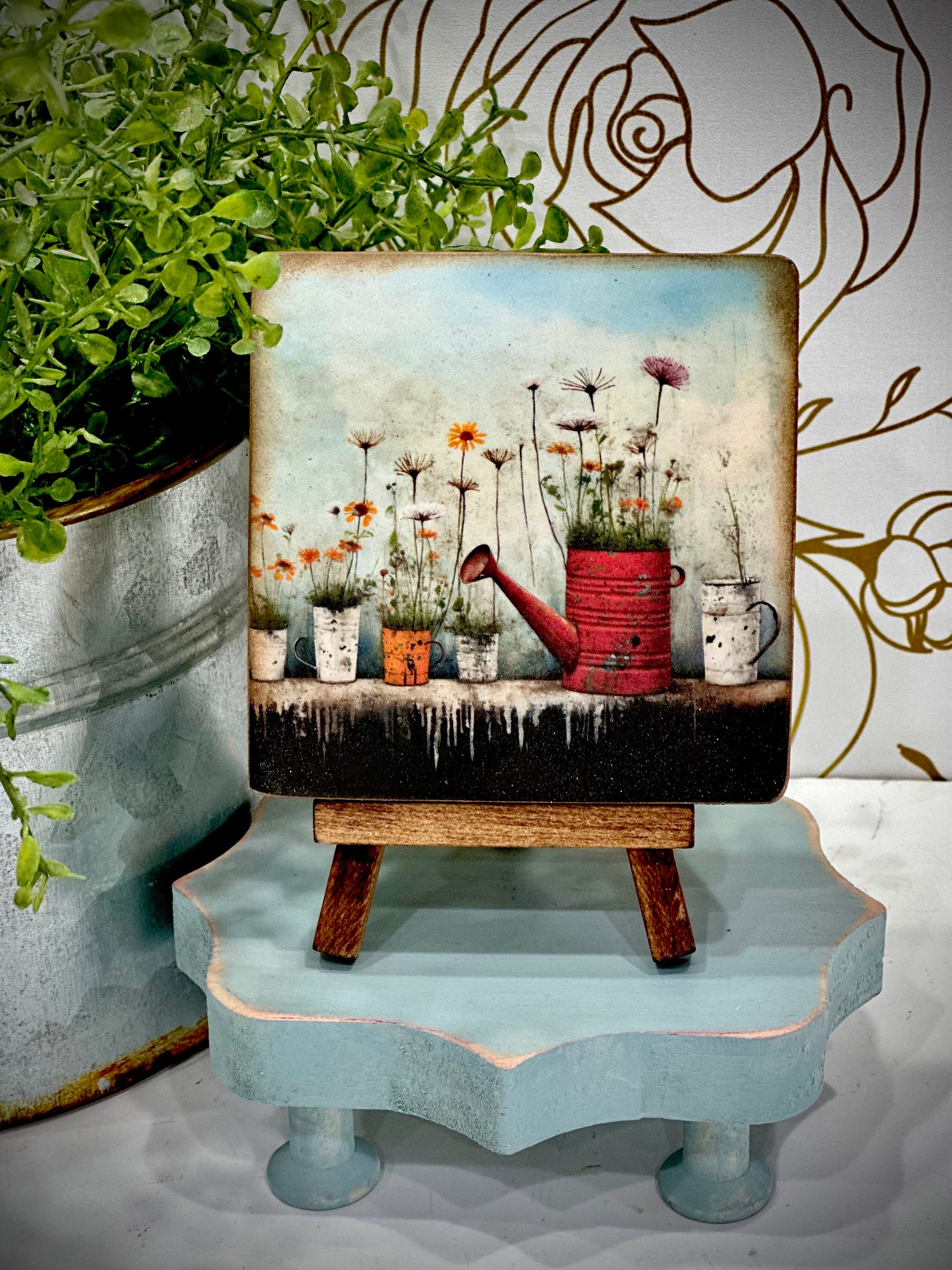 Spring has arrived, sprinkling magic everywhere with its whimsical charm. Get ready to embrace the beauty of this enchanting season with our delightful Mini Wood Signs with Matching Easel! Designed to add a touch of springtime joy to your shelf, tiered tray, or desk, these little pieces of art will make your space burst with a vibrant floral flourish. Let the folk-art inspired designs transport you to a blooming garden oasis, as you bring a dash of farmhouse aesthetic to your décor.